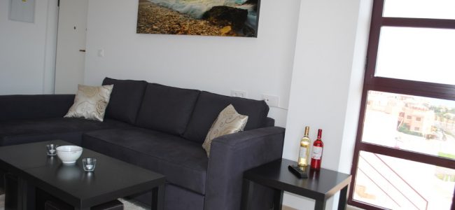 Lägenheten består av ett vardagsrum, kök, två sovrum, två badrum, en fin terass utanför vardagsrum och kök, en stor takterrass med underbar utsikt över havet, ett poolområde och bergen. Lägenheten är utrustad med AC för både värme och kyla. Det finns även WIFI tillgängligt. Rökning inomhus accepteras inte. Vi har plats för 6 personer.